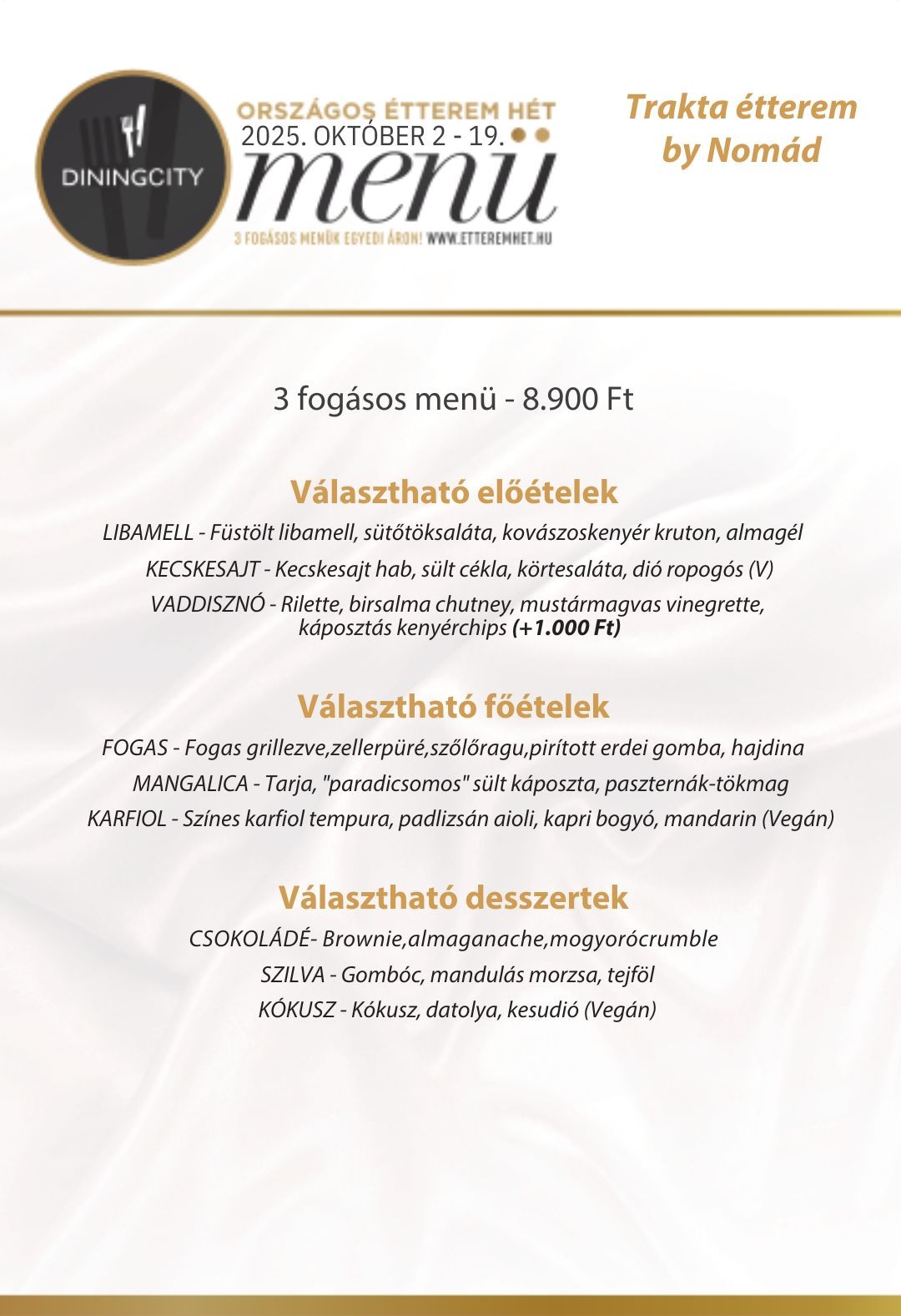 A Trakta Étterem is csatlakozott az Országos Étterem Héthez, ami idén október 2–19. között kerül megrendezésre.